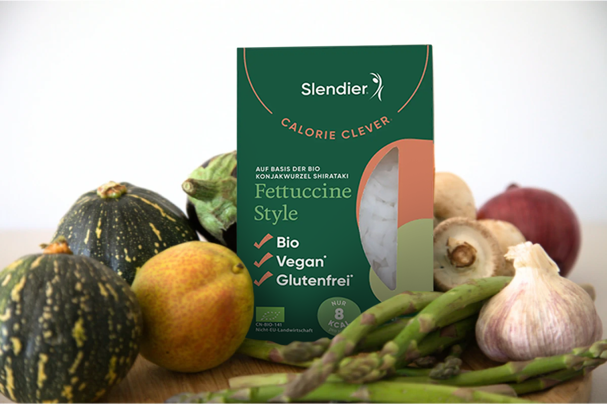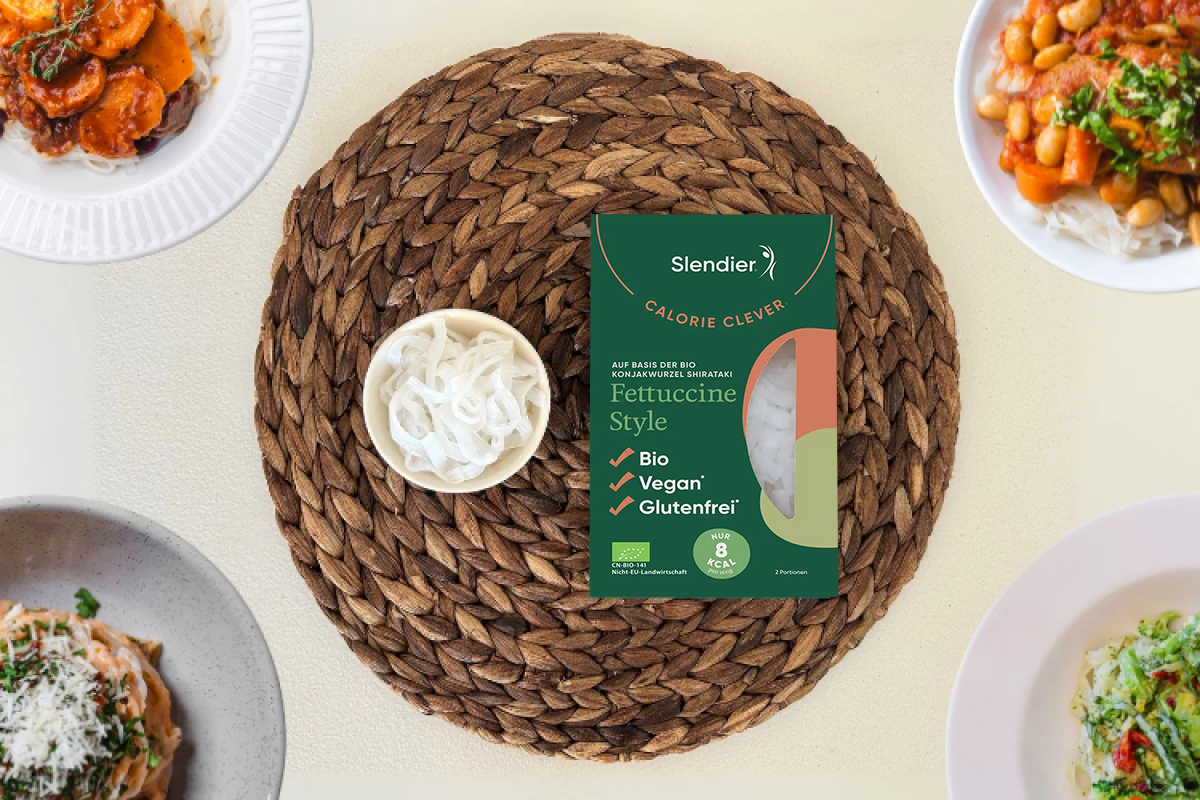 Die Fettuccine aus Konjak von Slendier enthalten keine künstlichen Farb-, Geschmacks- oder Konservierungsstoffe – nur reine pflanzliche Zutaten. Sie lassen sich wunderbar mit einer Vielzahl von Saucen kombinieren, damit Sie in nur wenigen Minuten ein gesundes Mittag- oder Abendessen zubereiten können.